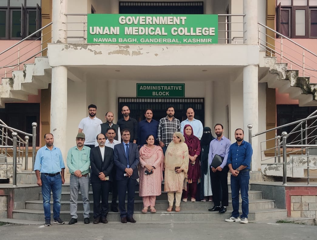 Principal/ Dean, GMC Srinagar, being Principal of Govt. Unani Medical College, Nawabagh, Ganderbal, today on 7th May 2024 took an indepth visit of Govt. Unani Medical College and interacted with the faculty and students in detail and impressed upon the college administration to stand firm, focused and determined towards the academic and patient care services. Principal GUMC also inspected the OPD/IPD blocks and Laboratory/Library areas, interacted with the patients and impressed upon the college administration to ensure highest standards with respect to services being provided.