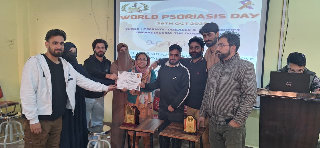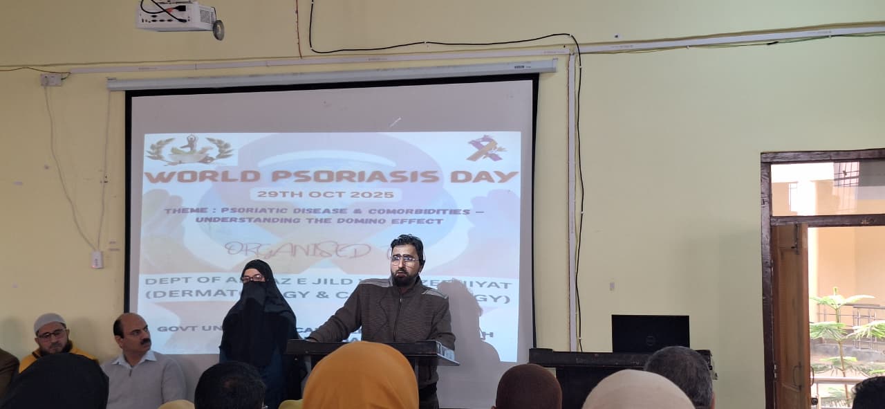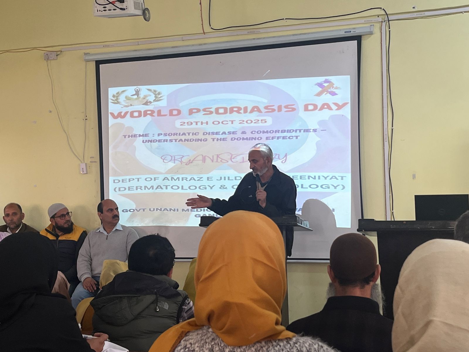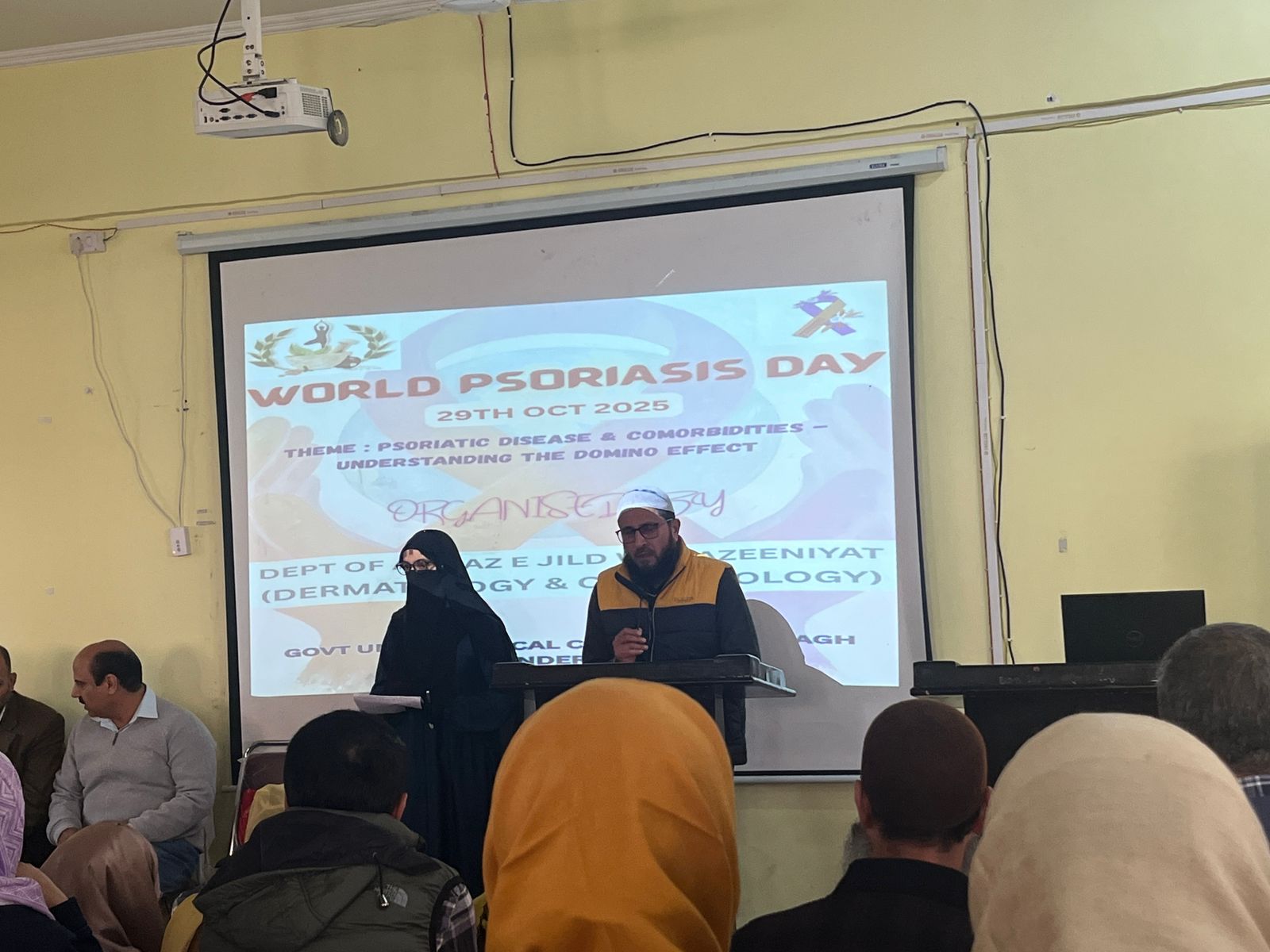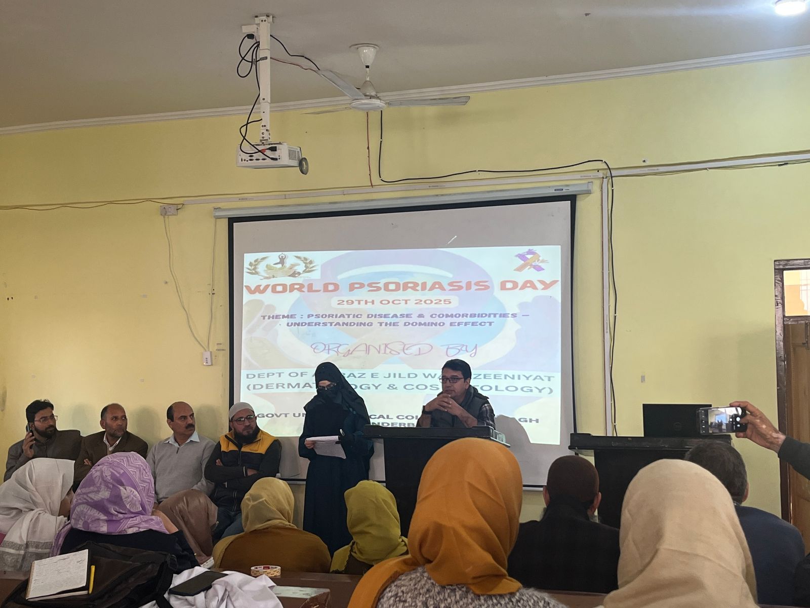 The Department of Dermatology and Cosmetology , GUMC Kashmir successfully Organized WORLD PSORIASIS DAY 2025 , today on 29th October, 2025 with theme "Psoriatic Disease and Comorbidities-Understanding the Domino Effect" under the supervision of Dr. Azad Hussain Lone, Associate Professor & HoD Dermatology & cosmetology.