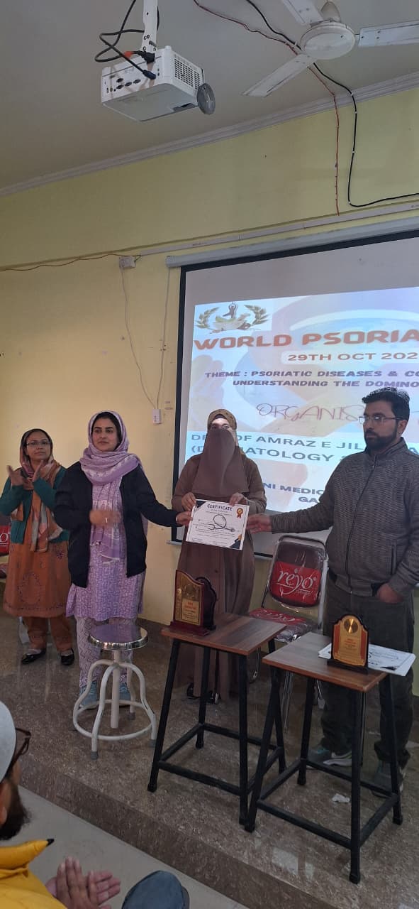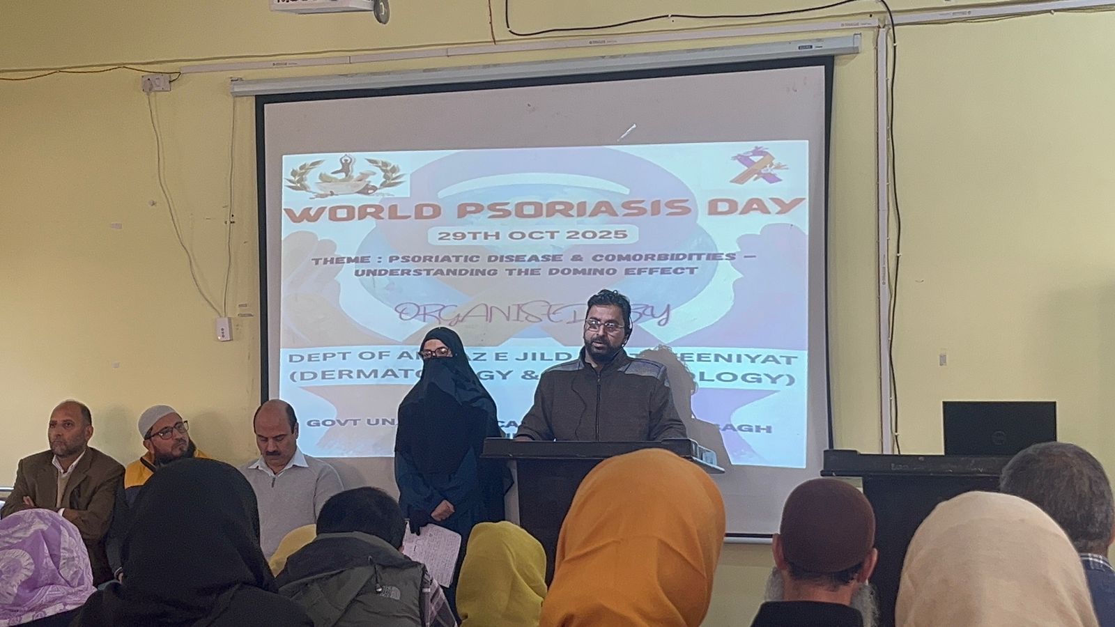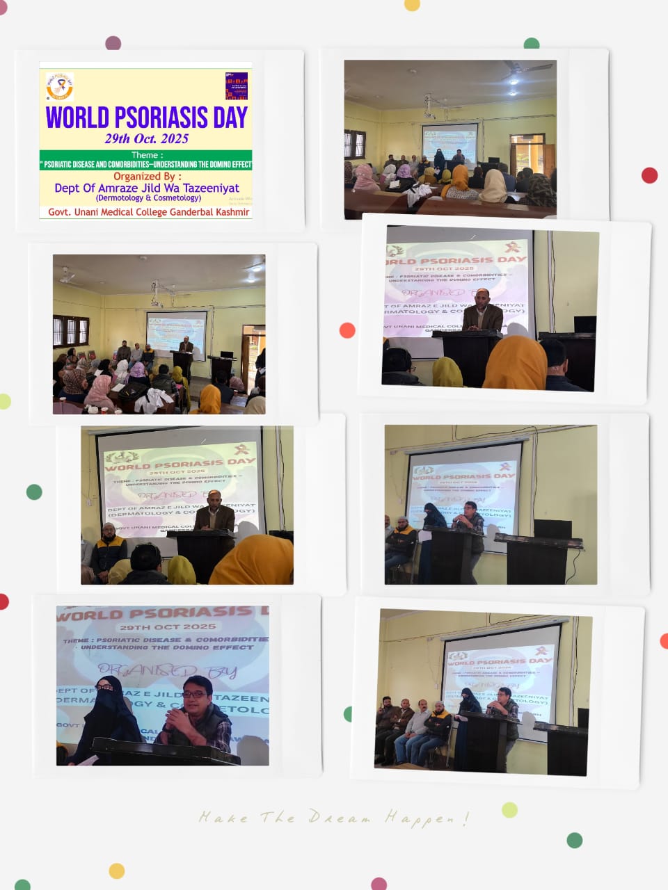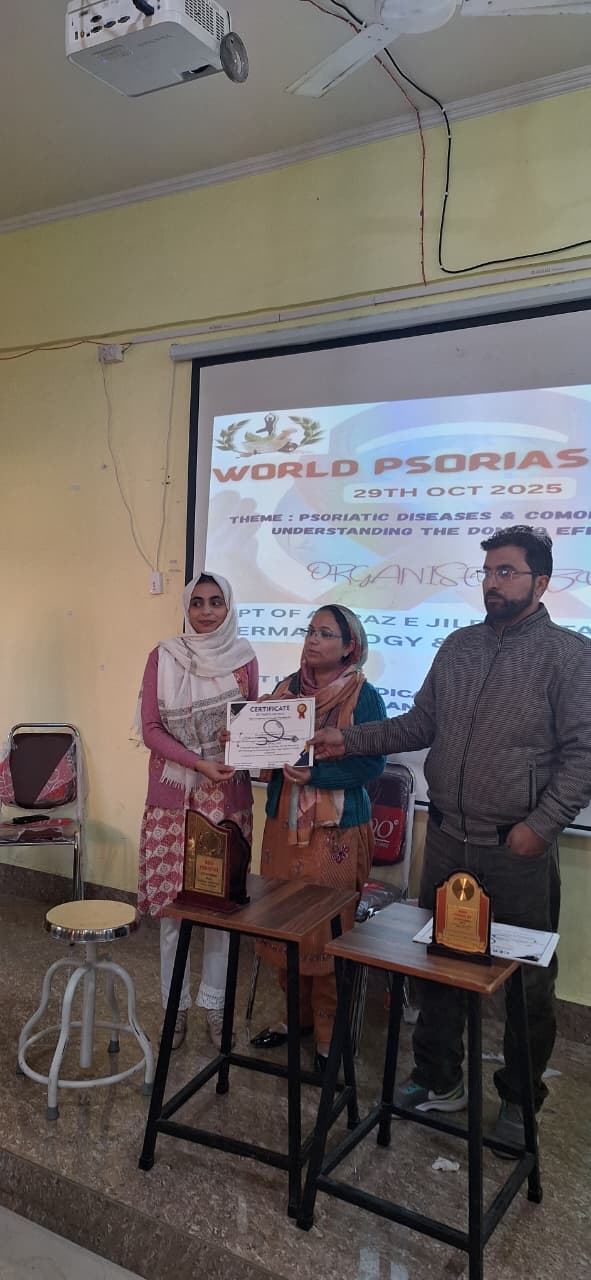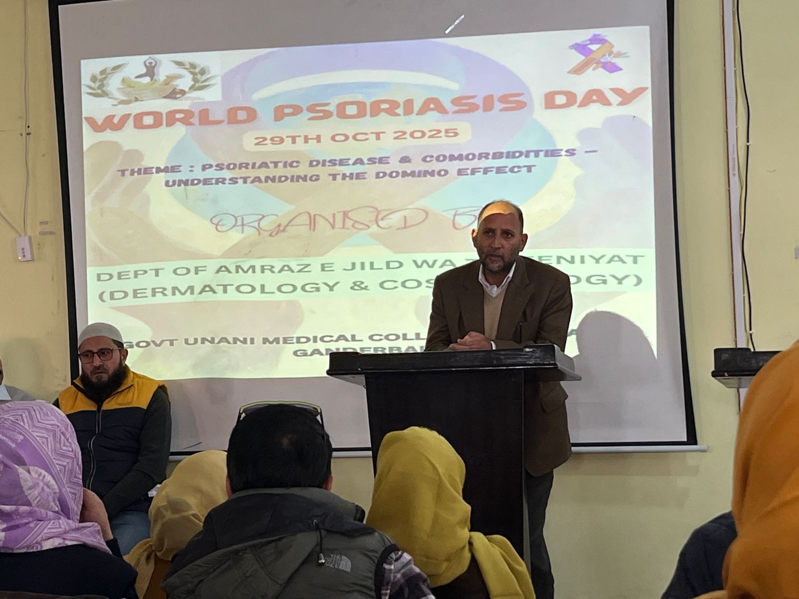 The Department of Dermatology and Cosmetology , GUMC Kashmir successfully Organized WORLD PSORIASIS DAY 2025 , today on 29th October, 2025 with theme "Psoriatic Disease and Comorbidities-Understanding the Domino Effect" under the supervision of Dr. Azad Hussain Lone, Associate Professor & HoD Dermatology & cosmetology.