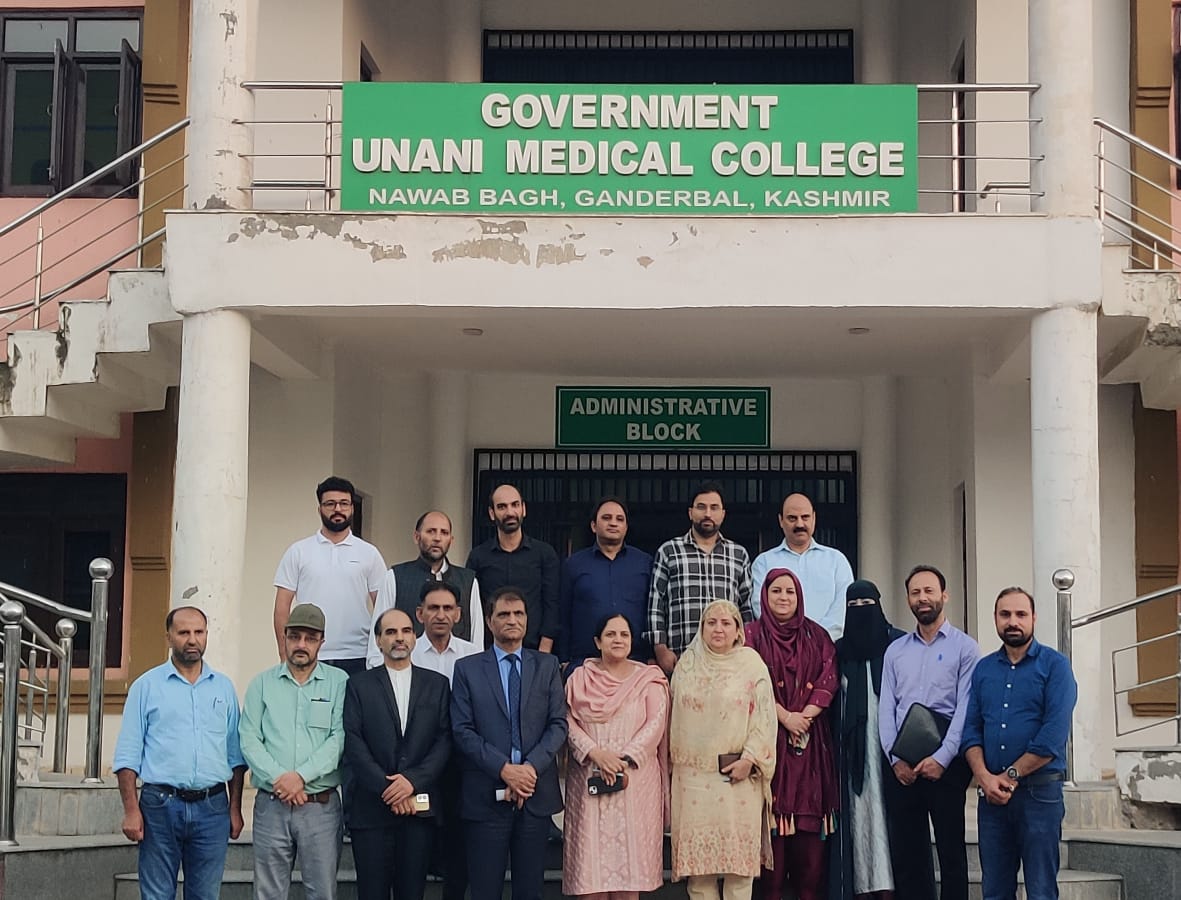 Principal/ Dean, GMC Srinagar, being Principal of Govt. Unani Medical College, Nawabagh, Ganderbal, today on 7th May 2024 took an indepth visit of Govt. Unani Medical College and interacted with the faculty and students in detail and impressed upon the college administration to stand firm, focused and determined towards the academic and patient care services. Principal GUMC also inspected the OPD/IPD blocks and Laboratory/Library areas, interacted with the patients and impressed upon the college administration to ensure highest standards with respect to services being provided.