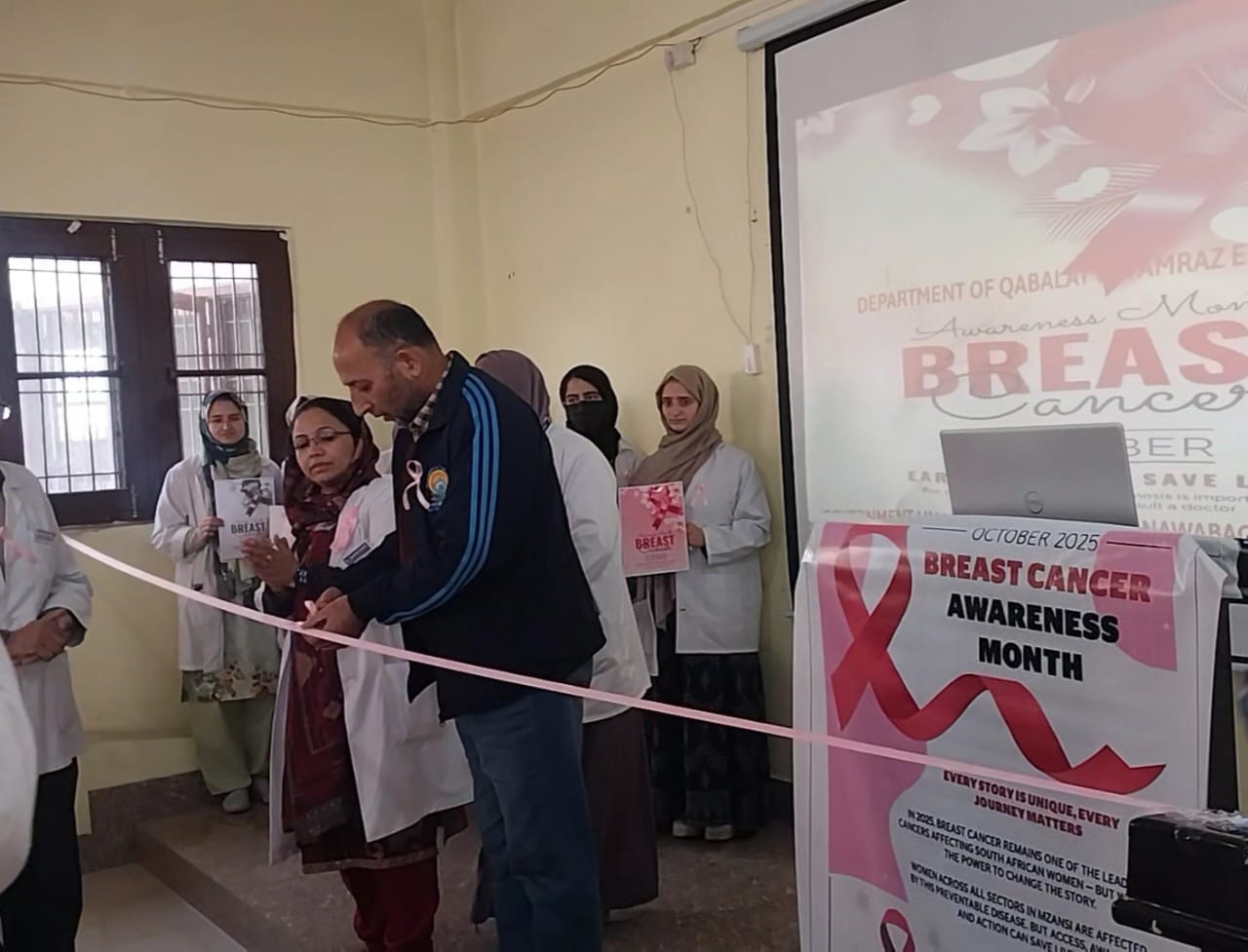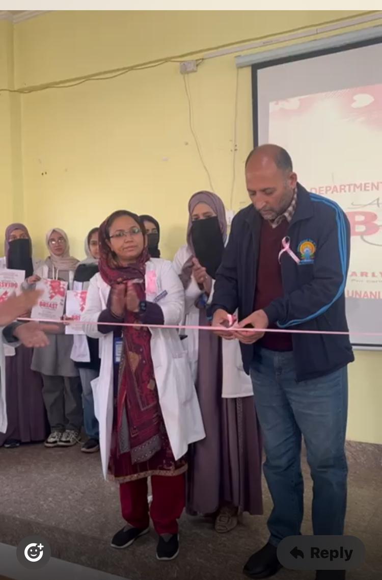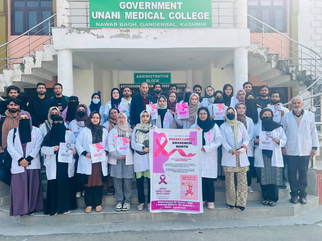 Department of Gynecology & Obstetrics GUMC Ganderbal hosted a Campus Awareness Walk in the college campus on occasion of "Breast Cancer Awareness Programme " 2025 under the supervision of Dr Shahida Habib HoD Gynecology & Obstetrics.