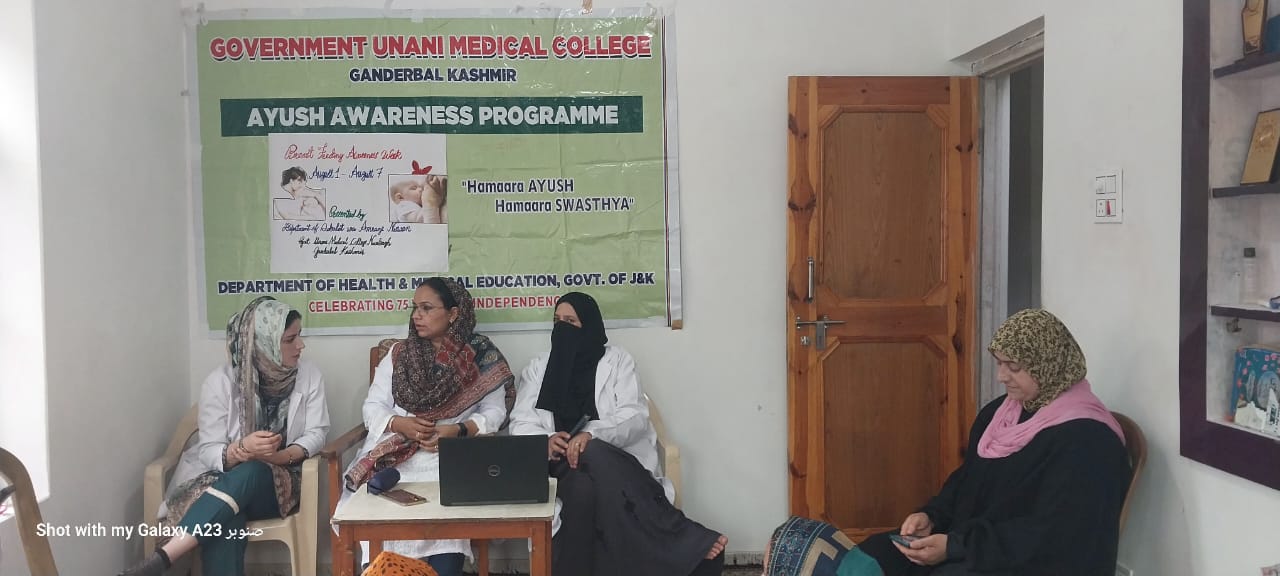 Breastfeeding Awareness Week, August 01 to August 07,2024 organized by the Department of Gynecology/ Obstetrics Government Unani Medical College Ganderbal Kashmir under the supervision of Dr Shahida Habib I/C HoD Gynecology/ Obstetrics