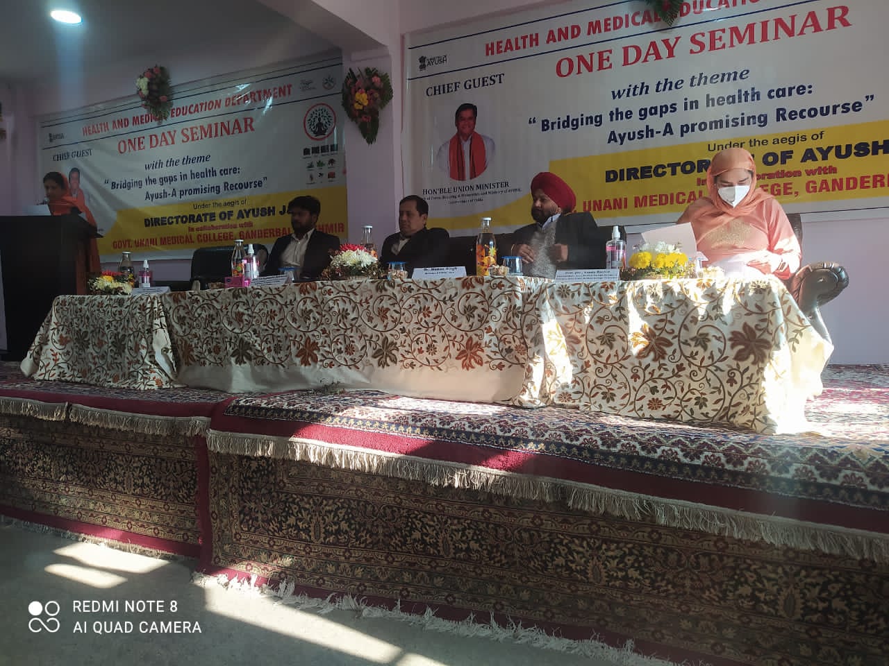 The seminar was graced by Dr. Iffat Hassan Shah (Principal/Dean, GMC Srinagar) as the Chief Guest and Mohd Ashraf Hakak (Administrator, Associated Hospitals, GMC Srinagar) as the Special Guest.The proceedings of the event were jointly conducted by Dr. Azad Hussain Lone (Nodal Officer, Unani Day) and Zarmeen Nawaz (Student Coordinator).